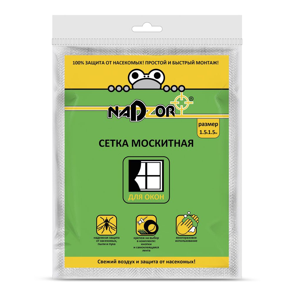 Сетка москитная для окон, 1,5*1,5 м, белая, в пакете, Nadzor