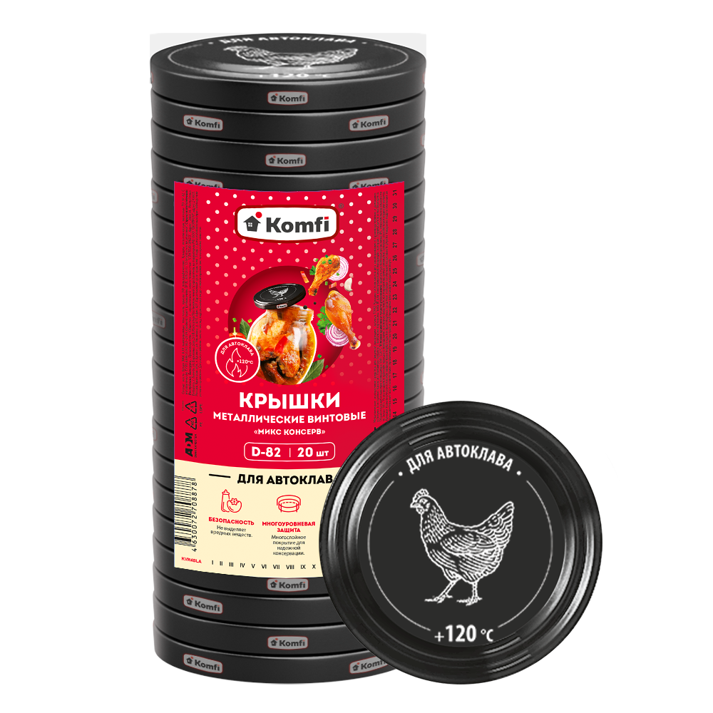 Крышки твист-офф d=82 мм, 20 шт/уп., mix дизайнов "Консервы" (АВТОКЛАВ), Komfi