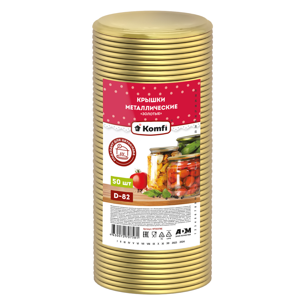 Крышки закаточные, d=82 мм, 50 шт/уп., золотые (АВТОКЛАВ), Komfi