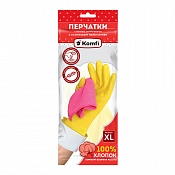 Перчатки хозяйственные латексные с х/б напылением, XL, желтые, 2 шт/уп., Komfi