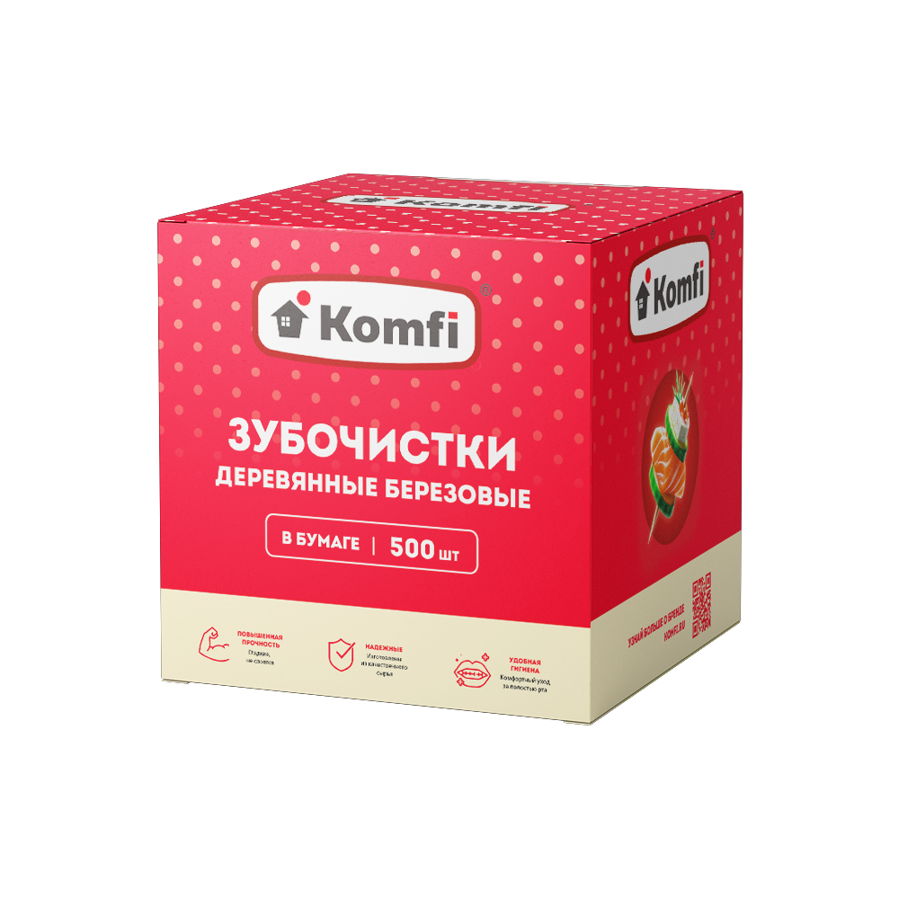 Зубочистки березовые в инд. бумажной упаковке, 500 шт, в коробке, Komfi