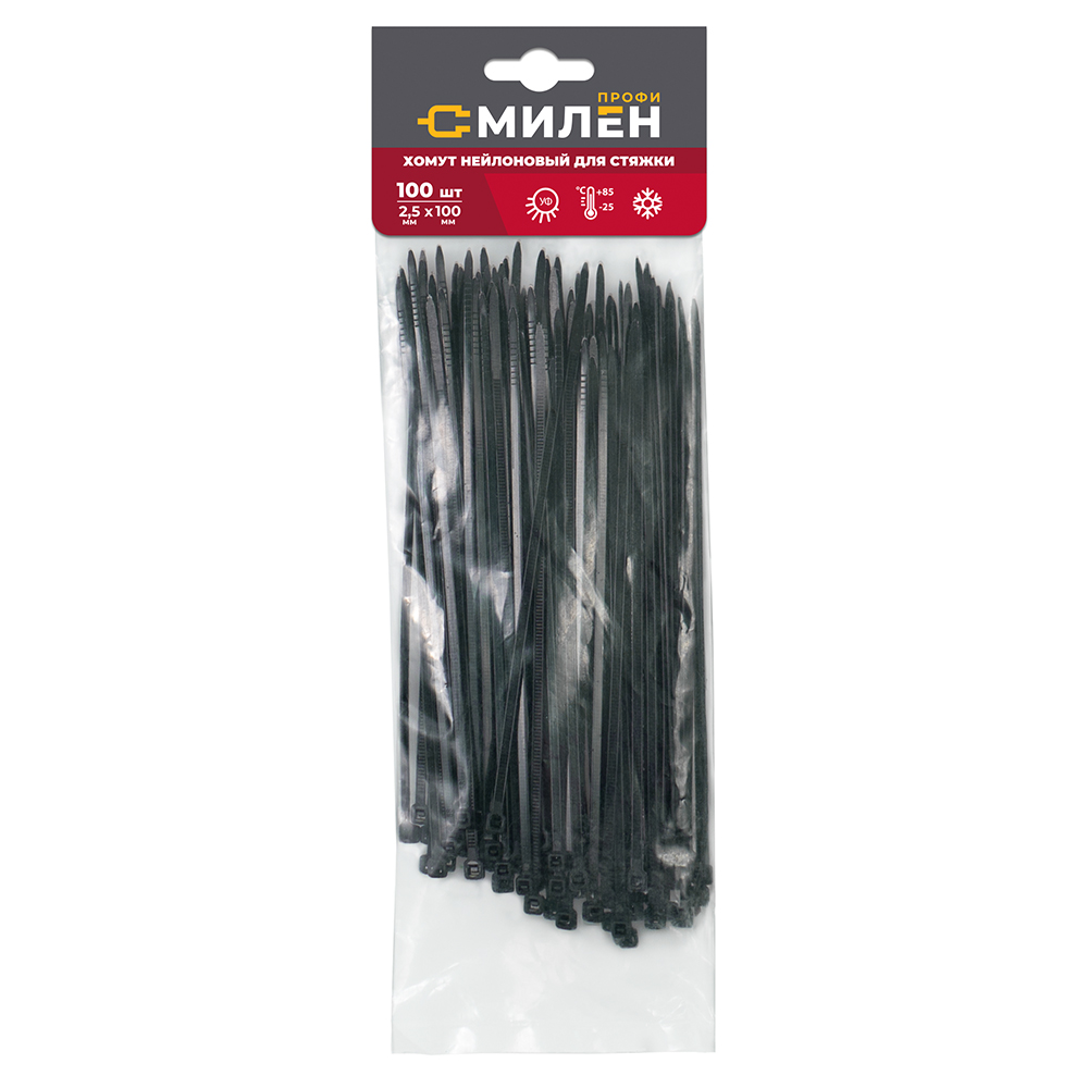 Нейлоновые хомуты для стяжки Милен, чёрные, 2,5*100 мм, 100 шт