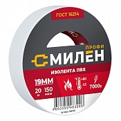 Изолента, ПВХ, 19мм * 20м, 150 мкм, 7кВ, белая, Милен