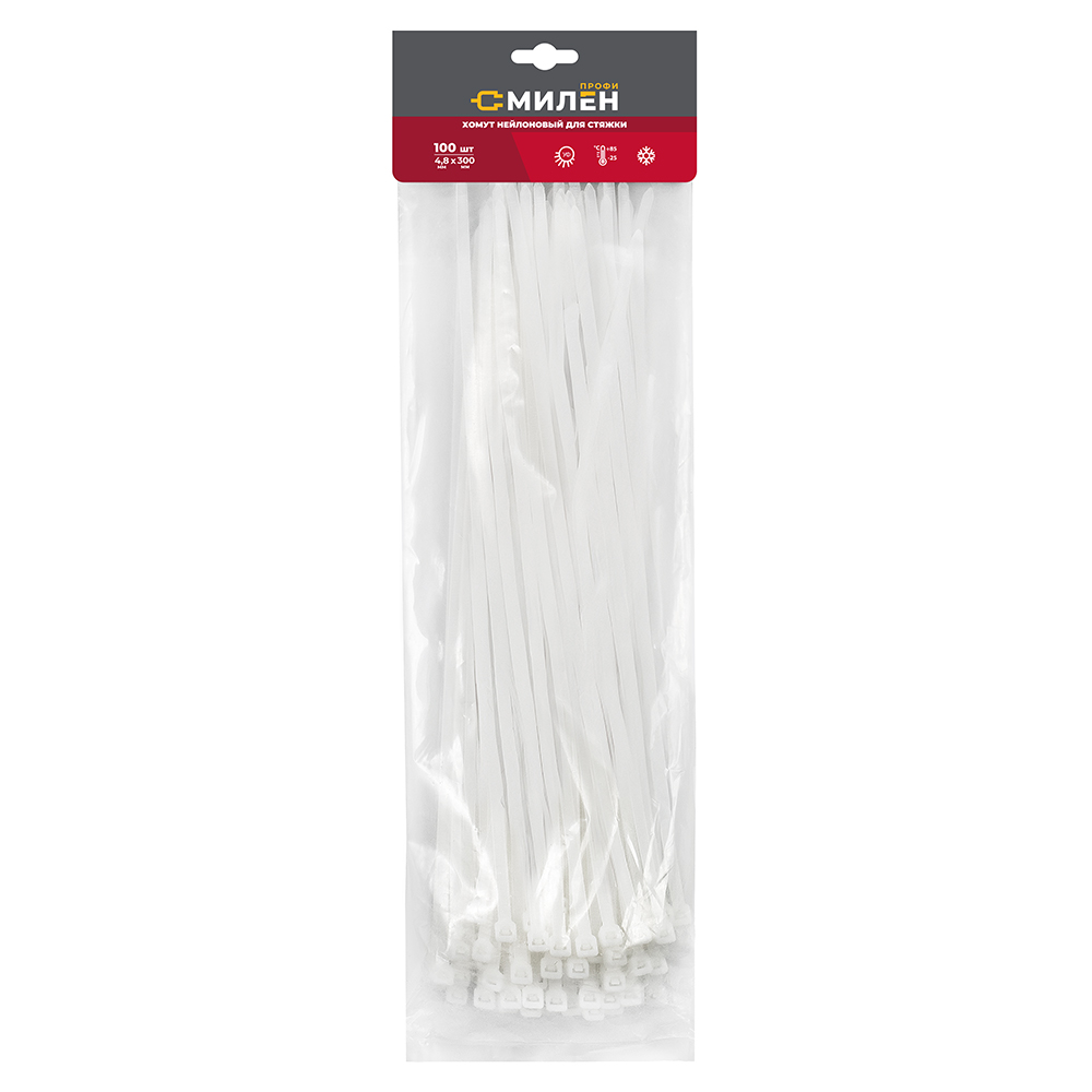Нейлоновые хомуты для стяжки Милен, белые, 4,8*300 мм, 100 шт