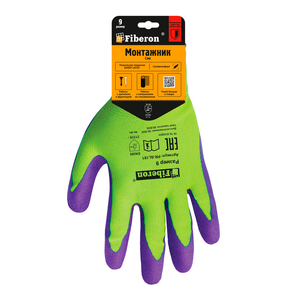 Перчатки "МОНТАЖНИК СЭНС: суперкомфортные", полиэстер, покрытие Sandy Latex, в и/у, 9(L), Fiberon
